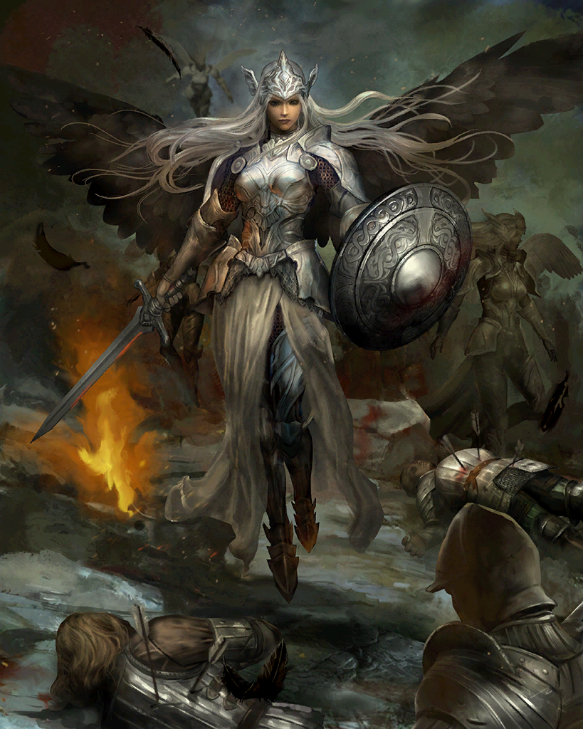 Although capable combatants in their own right, valkyries are almost always encountered mounted, typically on flying steeds such as dragon horses, pegasi.