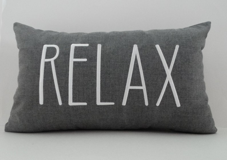 Relax pillow decorative throw pillow with saying pillow with words farmhouse decor farmhouse pillow rectangle pillow with quote cute pillow shabacadesigns 5 out of 5 stars (60) Featuring the bold phrase “relax” and a backdrop, this piece is sure to create a look of subtle sophistication to your space. Relax right pillows are designed to correctly support the normal curve in the spine which promotes correct posture and better sleep.