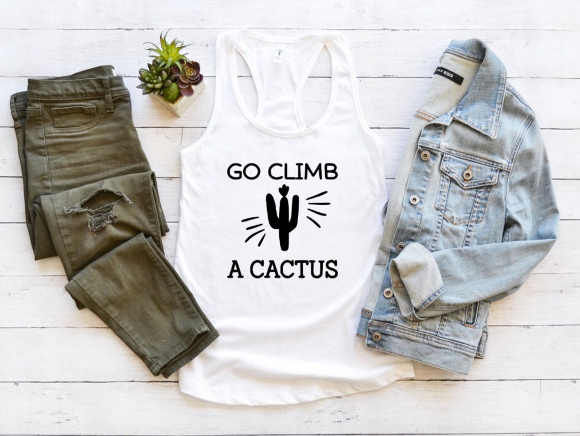 Go climb a cactus words and cactus. Crop top tank multiple colors available. Thread tank go climb a cactus women's sleeveless muscle tank top charcoal medium thread tank go climb a cactus women s sleeveless muscle tank top charcoal x large thread tank.
